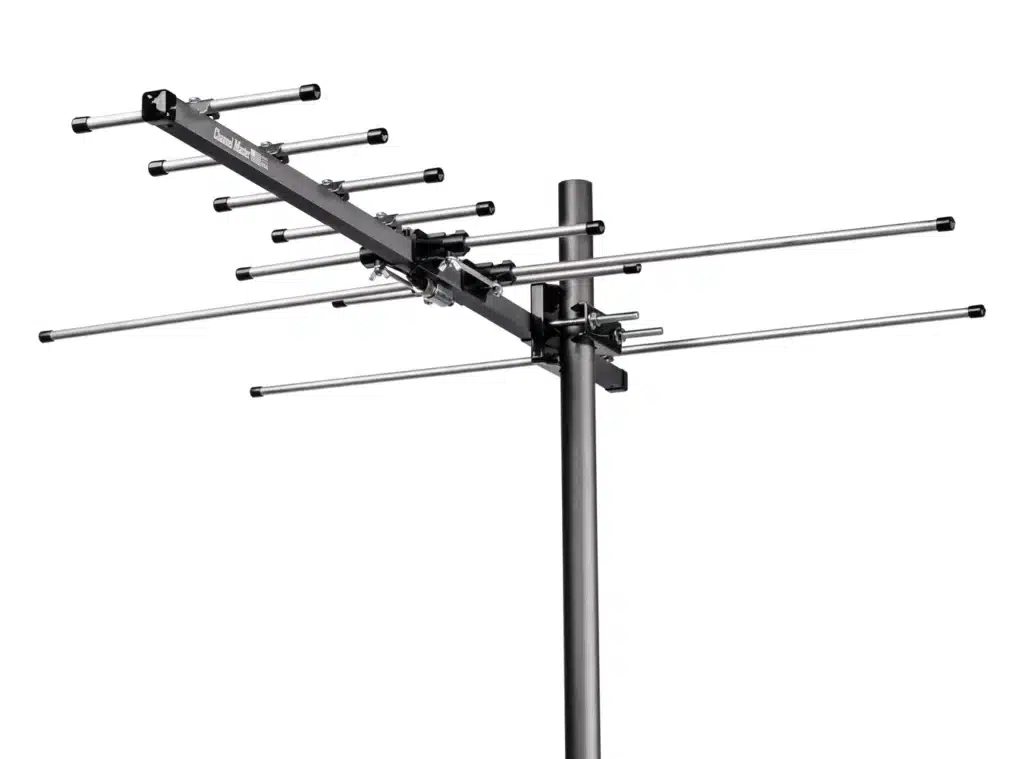 A professional-grade UHF/VHF/Low-VHF outdoor TV antenna designed for both commercial and residential applications. With excellent signal reception properties and a sleek design, the Channel Master Pro-Model antenna offers a 70+ mile range.